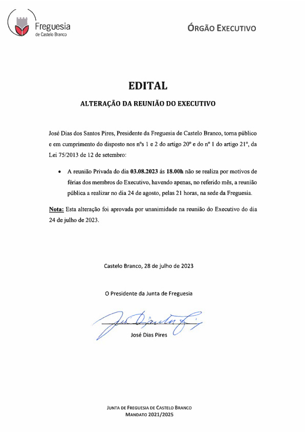 Nota: Esta alteração foi aprovada por unanimidade na reunião do Executivo do dia 24 de julho de 2023.